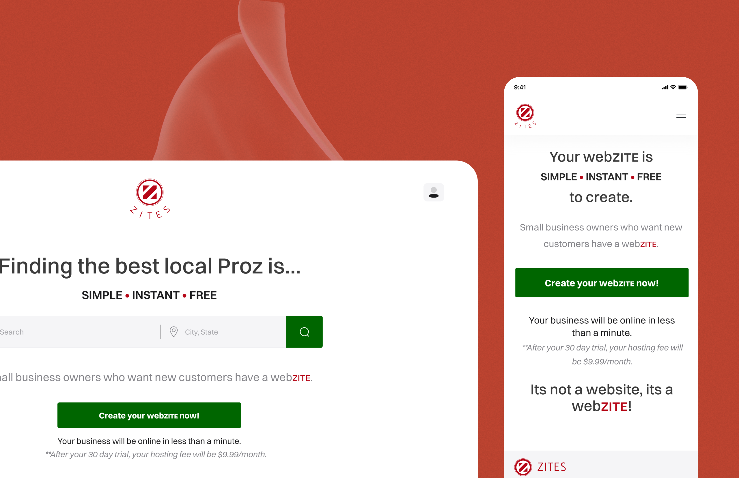 Zites is an innovative, cost-efficient online lead generation and business marketing platform designed specifically for small local and remote businesses and solopreneurs. The platform connects consumers with local professionals (“Proz”) through a simple, private, and secure system, eliminating the intrusive lead-selling practices common in the industry.